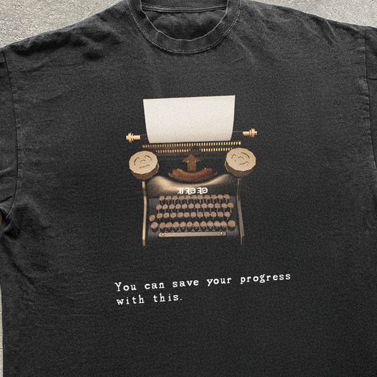 'Typewriters Save Progress' Res. Evil Black Vintage Washed Tee