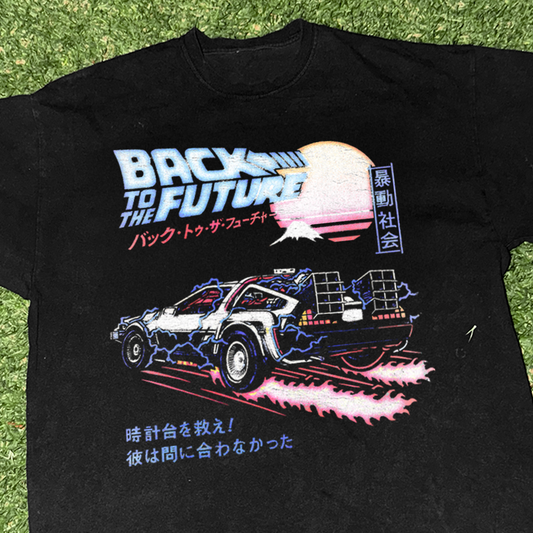 80s Japanese 'Back to the Future' Pop Art Vintage Black Tee