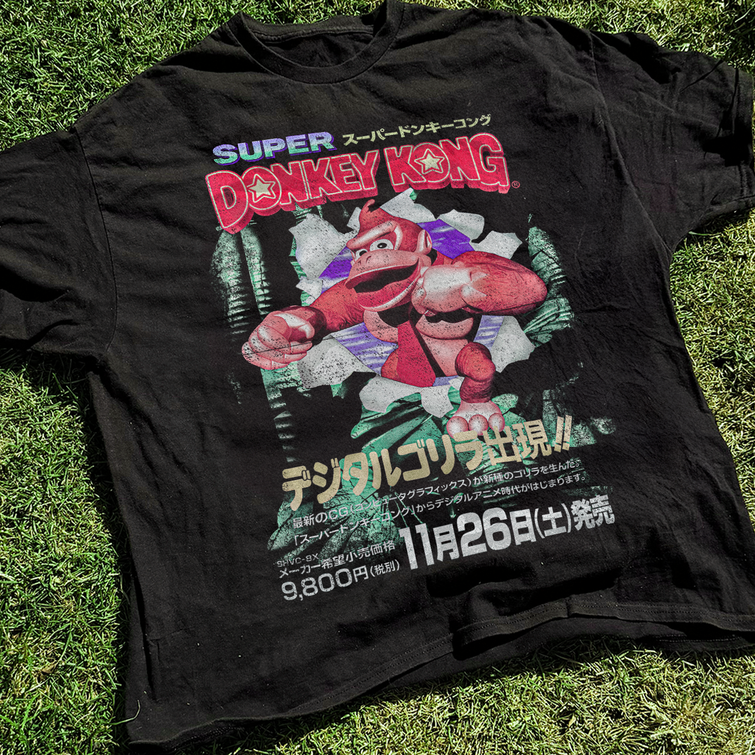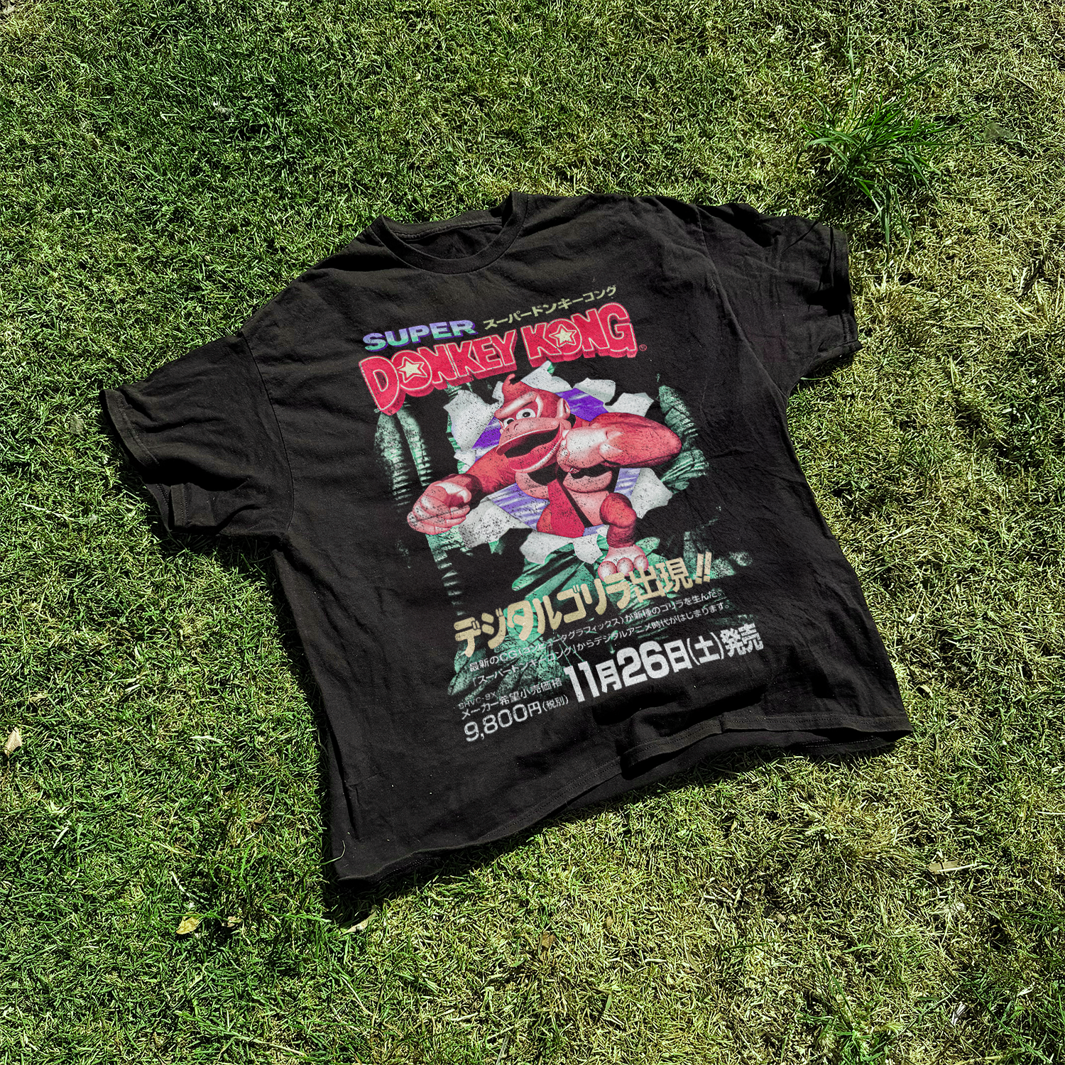 Vintaged 'Super Donkey Kong' Japanese SNES Washed Black Tee