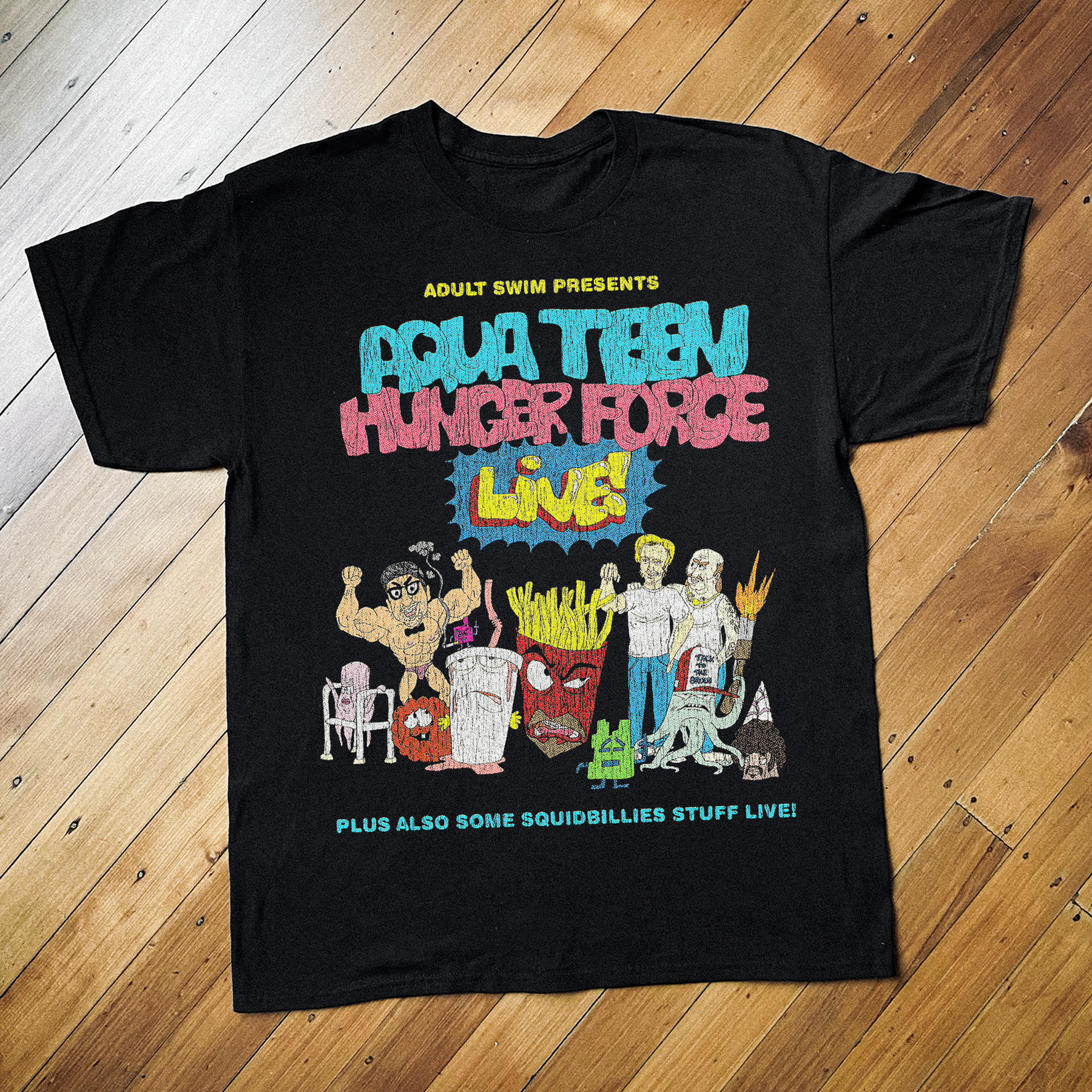 AQUA TEEN VINTAGE HUNGER FORCE TOUR BLACK T-SHIRT