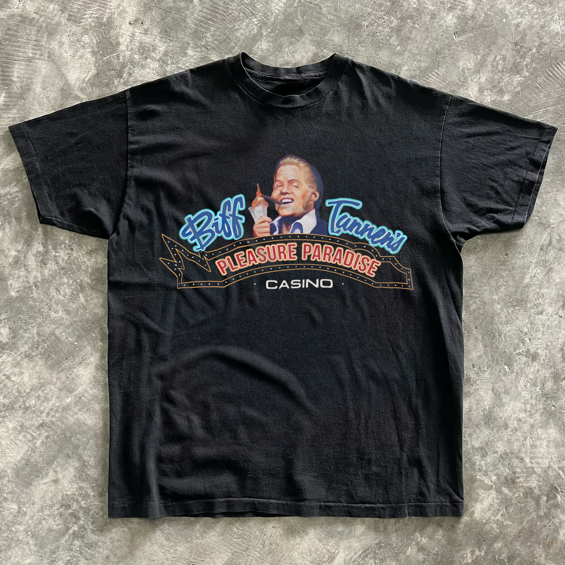 BIFF TANNER'S 'PLEASURE PARADISE CASINO' BLACK T-SHIRT